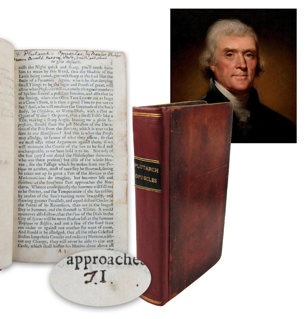 Lot 53 was a Thomas Jefferson signed and personally owned book, Vol. IV of Plutarch’s Morals (London: Printed for W. Taylor, 1718), from Jefferson’s library, and with provenance from U.S. Senate clerk Lewis Henry Machen. Not seen at public auction since 1829, the Jefferson owned volume was signed with a “T” on the “I” leaf on pg. 193, and also featured a 12-word holographic inscription on the first extant page. The presidential volume sold for almost three times its high estimate, exchanging hands for $112,500 including the buyer’s premium.